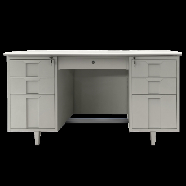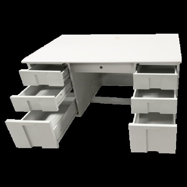 Металното бюро Carmen CR-1319 L съчетава практичност, сигурност и стилна визия в светлосиво покритие. Конструкцията е изработена от праховобоядисан метал с гладко покритие, а плотът е от ПДЧ с дебелина 25 мм и вграден отвор за кабели. Моделът разполага с общо 7 чекмеджета – три отляво, три отдясно и едно централно под плота – с възможност за заключване. Пълна информация за размерите и характеристиките на модела ще намерите в таблицата в таб/поле „Техническа информация“.
