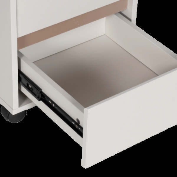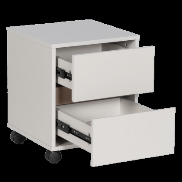 Офис контейнер с две чекмеджета ANGELES предлага практично решение за съхранение в работното пространство. Моделът е оборудван с две плавно движещи се чекмеджета и колелца, които осигуряват лесно преместване и удобство при употреба. Семплият му дизайн се съчетава отлично с бюро Subic, придавайки модерен и подреден вид на офиса. Подходящ за документи, офис принадлежности и аксесоари. Пълна информация за размерите и характеристиките на модела ще намерите в таблицата в таб/поле 'Техническа информация'.