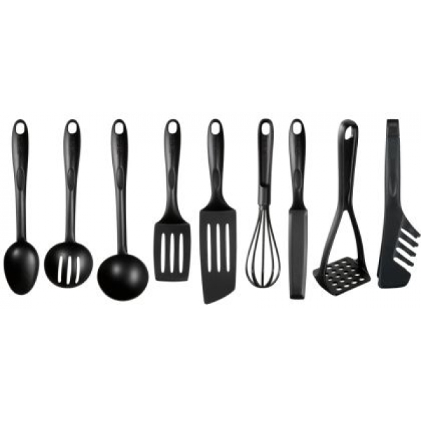 | Вид | The set includes:whisk, potato masher, spoon, spatula, ladle, slotted spoon, tongs |