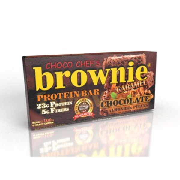 Описание: Протеинов десерт "Choco Chef's Brownie" с шоколад, бадеми, пекани и подсладител фруктоза. Протеинов десерт с 23g протеин и фибри. Изключително вкусен и допълнително обогатен с ленено семе и ленено масло. Съдържа 100% натурални плодове.