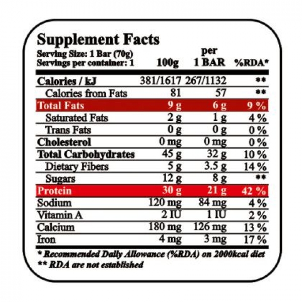 Protein/ Белтъчини: 30g (21g) 42%