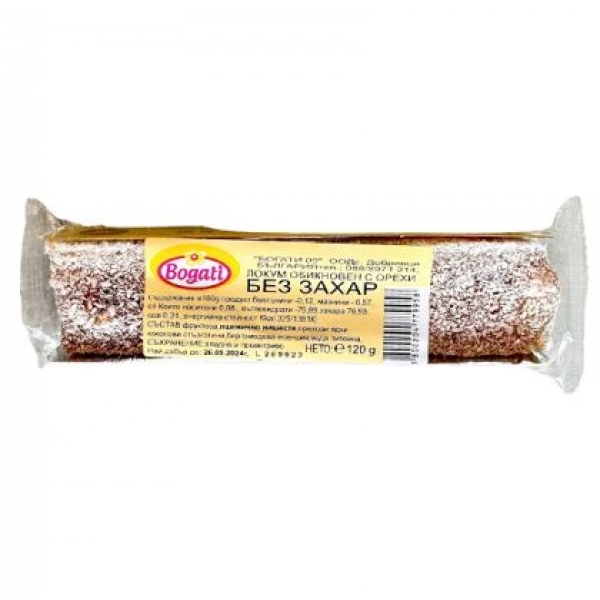 Локум с орехи, без захар, “Богати”, 120гр