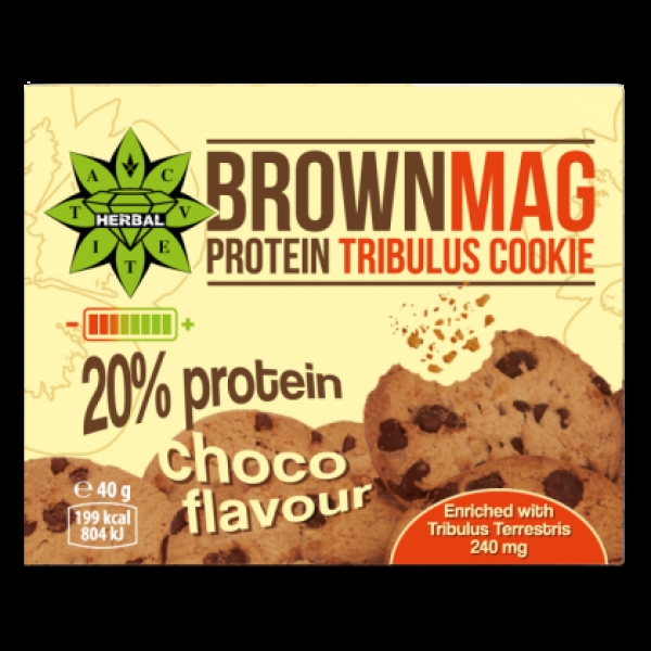 BrownMag протеинова бисквитка с какаови парченца и трибулус 40 гр. - 20% протеин, без захар