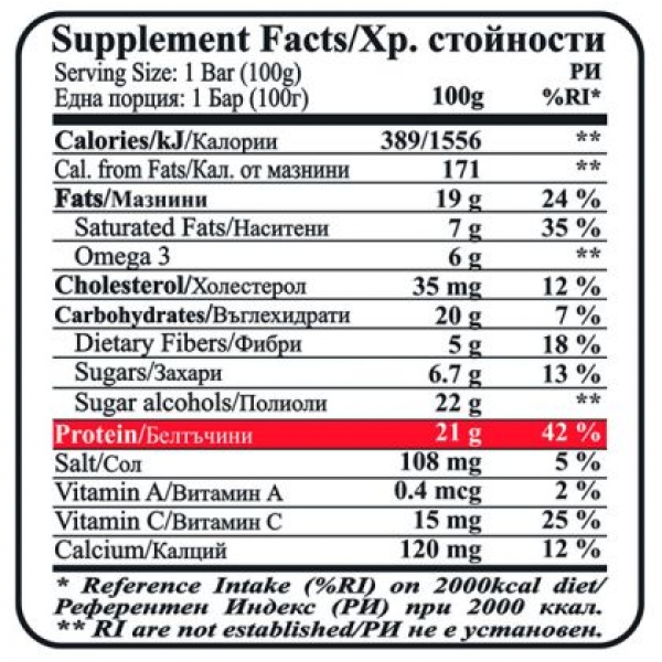 Протеинов бар, Фъстъчен крем и шоколад, “Брауни”, 100гр