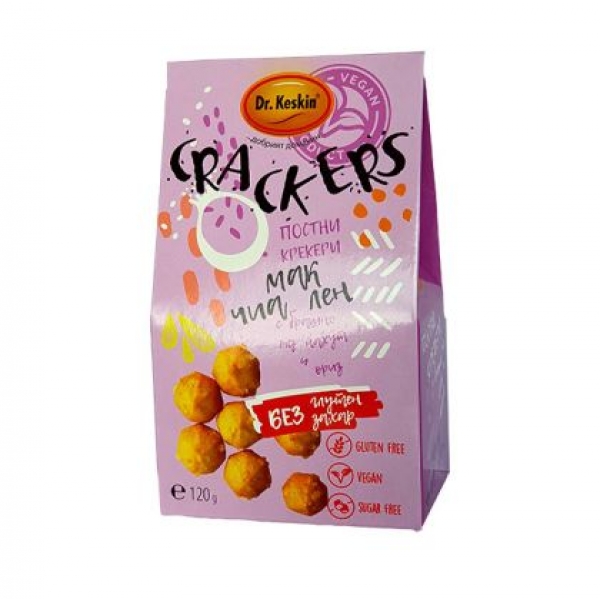 Крекери с мак, чиа и лен, без глутен, Dr. Keskin, 120гр