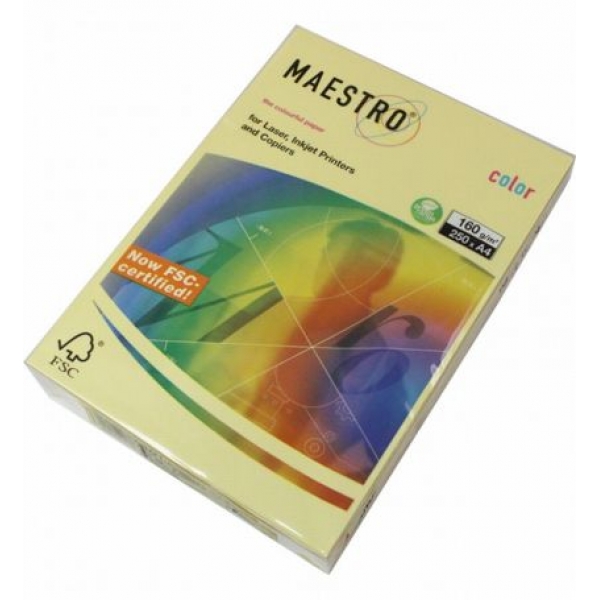 Цветен картон Maestro Color Жълт пастел, А4, 250 л. 160 g/m2