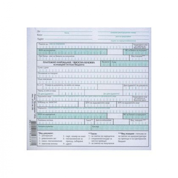 Платежно нареждане с вносна бележка за плащане от/към бюджета, з Химизирано, 2/3 А5 100 л.