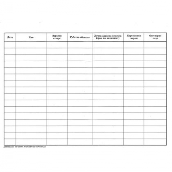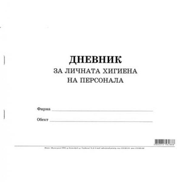 Дневник за личната хигиена на персонала Меки корици, вестник, А4 50 л.