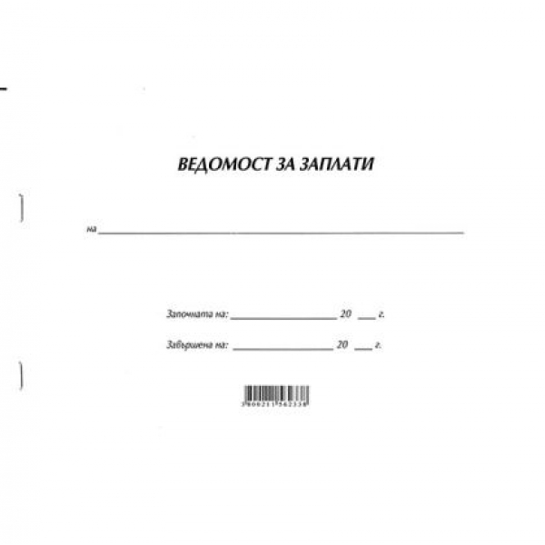 Ведомост за заплати Меки корици, вестник, А4 50 л.