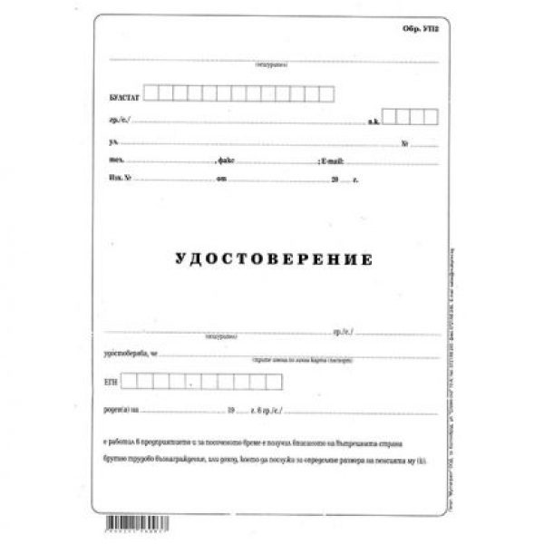 Удостоверение за трудово възнаграждение УП-2 Вестник, А3 50 л.