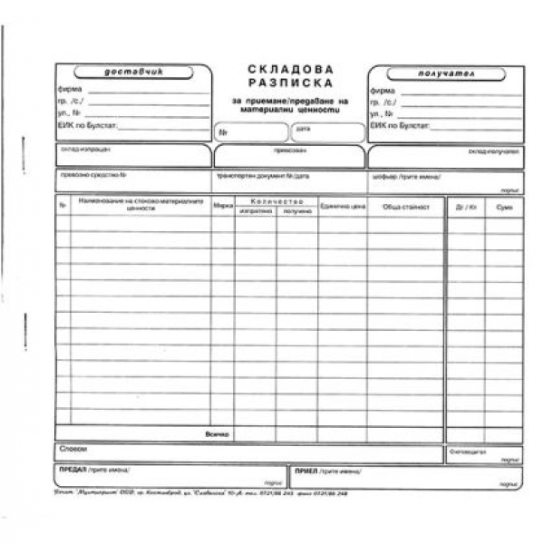 Складова разписка 12 реда Химизирана, 2/3 А4 100 л.