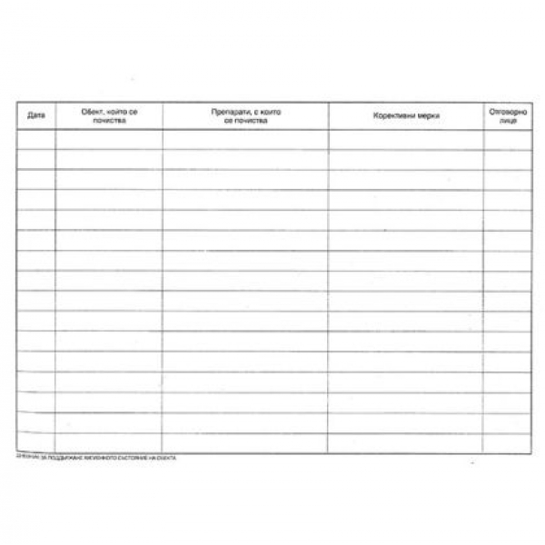 Дневник за поддържане хигиенното състояние на обекта Меки корици, вестник, А4 50 л.