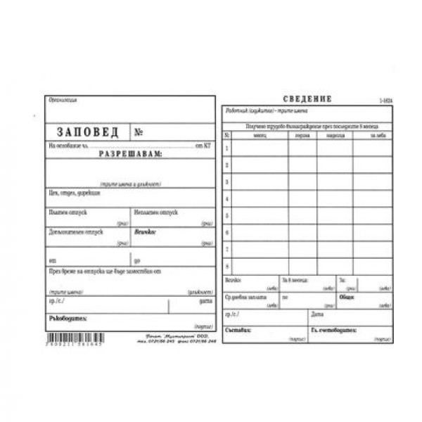 Заповед за разрешаване на отпуск Химизирана, А5 100 л.