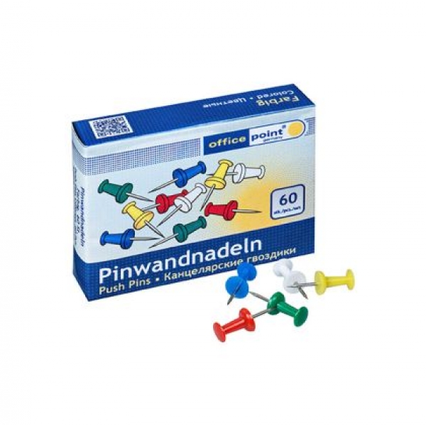 Пинове Office point Обикновени 60 бр. Цветен микс