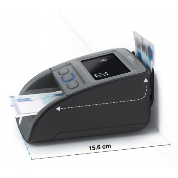 • Проверява банкноти по до седем защитни елемента: инфрачервен сензор, магнитно мастило, метална нишка, воден знак, цвят, размер и дебелина