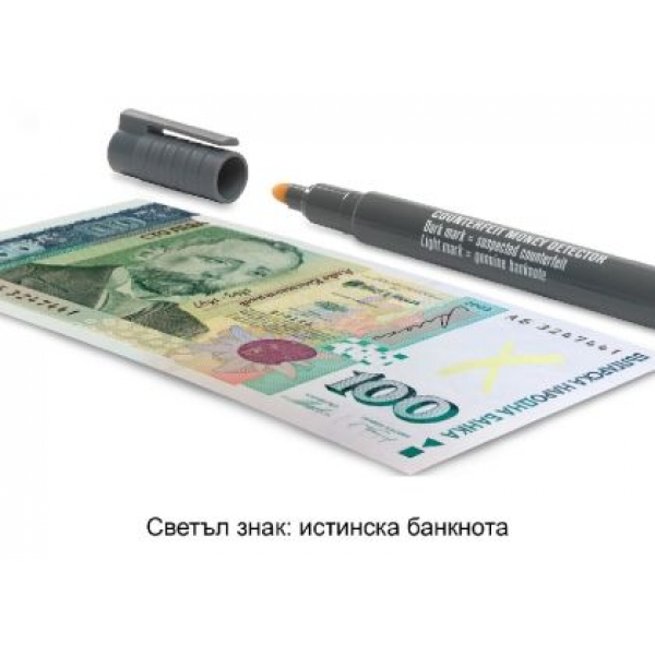 Маркерът е перфектен начин за проверка на всички валути бързо и лесно, на всяко място. Когато поставеният знак е тъмен, банкнотата е фалшива. Ако знакът избледнее и накрая изчезне-банкнотата е истинска. Safescan 30 може да се използва за тестване на всички видове банкноти и валути.