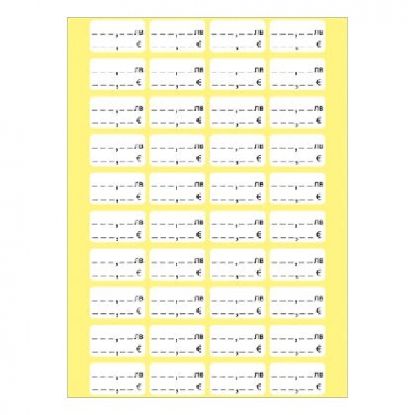 Етикети за цени лв. / EUR 28х16 mm 50л.х40ет./бандерол Бели