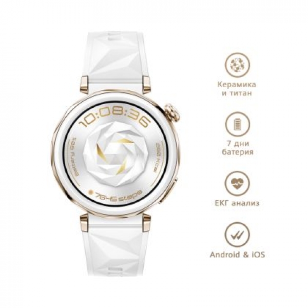 Часовник Huawei Watch GT5 Pro Jana-B29F, 1.32" Amoled 466x466, PPI 352, BT5.2, BLE/BR/EDR, 323mAh, TruSense System, ECG analysis, Battery life up to 7 days, Compatible with iOS and Android devices, White Fluoroelastomer + Huawei FreeBuds SE 3 ULC-CT020 Bl