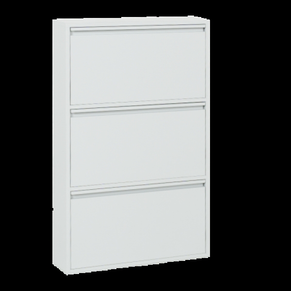 Металният шкаф за обувки Carmen CR-1228 E J съчетава стил, здравина и практичност. Изработен от праховобоядисан метал, моделът разполага с 3 отделения с падащи вратички, които побират между 9 и 12 чифта обувки. Идеален избор за коридори, офиси или обществени помещения. Пълна информация за размерите и характеристиките на модела ще намерите в таблицата в таб/поле 'Техническа информация'.